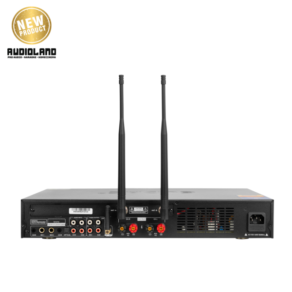 Phía sau máy là hệ thống kết nối đa dạng với các cổng AV, USB, Optical, HDMI cùng ăng-ten đôi hỗ trợ bluetooth 5.0, mang đến khả năng kết nối không dây ổn định và linh hoạt. Với thiết kế mỏng nhẹ, tinh tế và thân thiện với người dùng, EUDAC LUX-6DA là một ampli lý tưởng cho các hệ thống karaoke gia đình và chuyên nghiệp hiện đại.