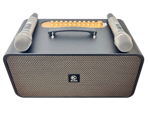 Loa di động KOMI Enigma công suất lớn, phù hợp cho các tiệc sinh nhật, dã ngoại... sử dụng ngoài trời, mang tới âm thanh tinh tế, 2 mic hiệu ứng trong trẻo, đày đặn.
