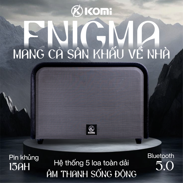 Loa di động KOMI Enigma công suất lớn, phù hợp cho các tiệc sinh nhật, dã ngoại... sử dụng ngoài trời, mang tới âm thanh tinh tế, 2 mic hiệu ứng trong trẻo, đày đặn.