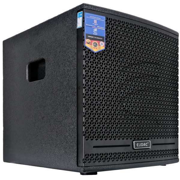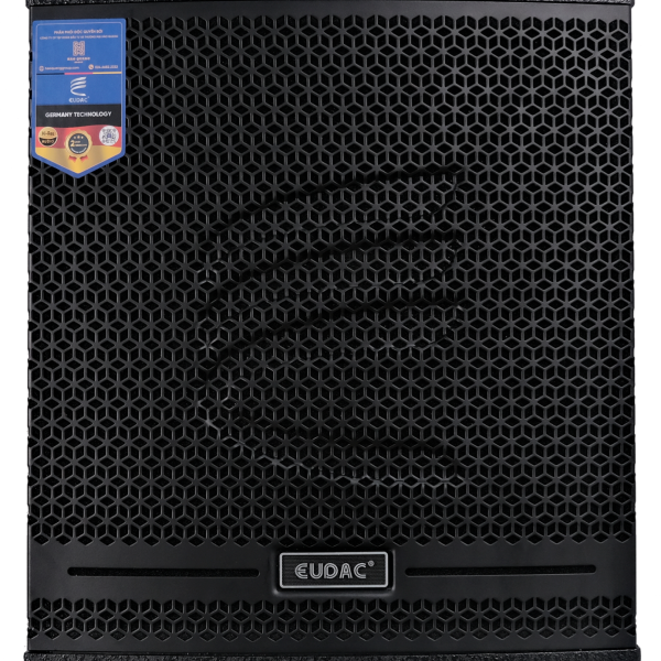 Loa sub EUDAC LUX-12SA có thiết kế bên ngoài chắc chắn, hiện đại và chuyên nghiệp. Thùng loa được chế tạo từ gỗ ép dày phủ sơn đen nhám chống trầy xước, đảm bảo độ bền cao trong môi trường sử dụng khắc nghiệt như sân khấu, hội trường hoặc sự kiện di động. Mặt trước là lưới kim loại dạng tổ ong phủ sơn tĩnh điện, giúp bảo vệ củ loa bên trong khỏi va chạm và bụi bẩn, đồng thời được tạo điểm nhấn bằng logo EUDAC nổi bật cùng logo dập chìm cách điệu dạng ở trung tâm tăng thêm điểm nhấn cho sản phẩm.