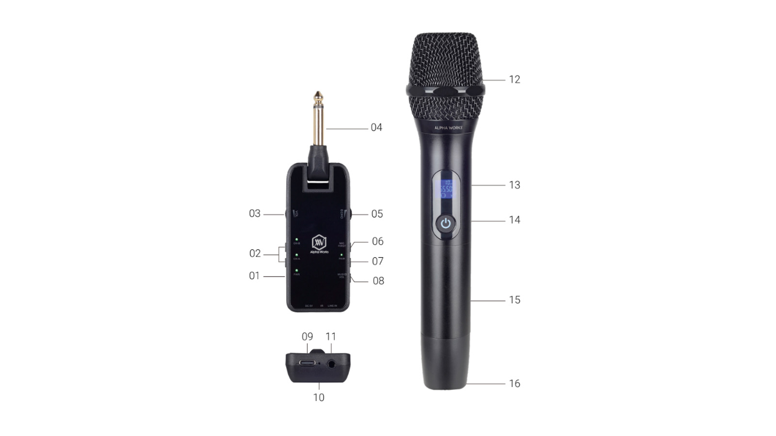 Micro không dây ALPHA WORKS D2 gồm bộ thu phát tín hiệu, hai micro cầm tay và được chế tác từ chất liệu kim loại. Bên ngoài phủ lớp sơn tĩnh điện chống bám bụi, vân tay mang đến sự bền bỉ khi sử dụng, những ưu điểm trên tạo cho micro không dây ALPHA WORKS D2 sự bền bỉ, mạnh mẽ. Dáng mic được hãng gia công thon gọn, dễ dàng cầm tay, đi cùng tông màu đen sang trọng, Alpha Works D2 chinh phục người dùng với thiết kế đầy tối ưu và tinh tế.